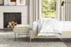 A sleek bedroom bench with modern, elevated lines